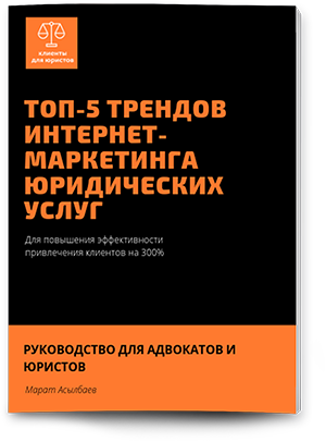 Узнайте, ТОП-5 трендов интернет-маркетинга юридических услуг, которые помогут увеличить эффективность ваших вложений в интернет-маркетинг на 300%. Забирайте ваш экземпляр PDF-книги. Куда вам ее отправить?